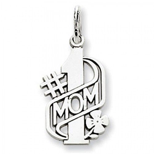 Number 1 Mom Charm in White Gold - 14kt - Mirror Polish - Interesting - Women