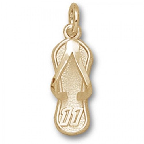 We Offer This Lovely Number 11 Flip Flop Charm Made of Gold Plated. It Has a Flip Flop with Driver #11 Denny Hamlin of Nascar Symbol. This Charm Is Done to a Mirror Like Polish Metal. Buy This Fine Number 11 Flip Flop Charm Now and Discover a Rare Racing Accessory. Processing Time: 10 days. BRAND : NASCAR OFFICIALLY LICENSED CHAIN TYPE : NO CHAIN TYPE CLASP TYPE : NO CLASP TYPE HEIGHT : 2 LENGTH : 15 METAL STAMP : 1.1 METAL TYPE : GOLD PLATED METAL UNIT OF MEASURE : GRAMS TOTAL METAL WEIGHT : NO METAL STAMP UNIT OF MEASURE (DIMENSIONS) : MM WIDTH : 5
