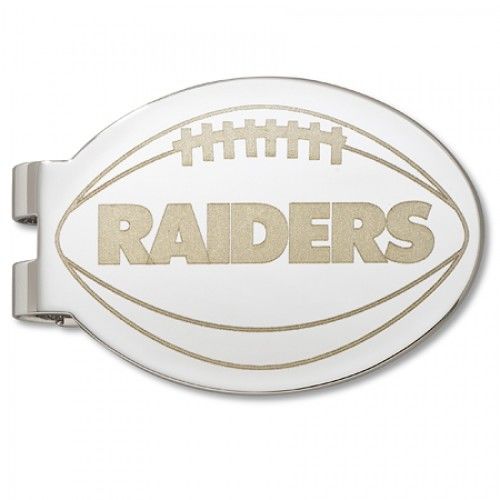 This Is Our Oakland Raiders Laser-Etched Money Clip. This Money Clip Is Made of Solid Base Metal and Rhodium Finished so You Know It Will Last. Each Money Clip Is Then Laser Etched with the Oakland Raiders Team Logo. As an Added Spectacular Touch, the Money Clip Itself Is Football Shape. the Raiders Football Shape Money Clip Measures Approximately 1.75 Inches By 1.75 Inches in Diameter. Each One Is Nfl Officially Licensed Comes Gift Boxed in a Velvet Box. Processing Time: 10 days. BRAND : NFL Officially Licensed HEIGHT : 5 LENGTH : 57 METAL STAMP : 17.9 METAL TYPE : RHODIUM PLATED BASE METAL METAL UNIT OF MEASURE : GRAMS SIZE : ONE SIZE TOTAL METAL WEIGHT : NO METAL STAMP UNIT OF MEASURE (DIMENSIONS) : MM WIDTH : 30