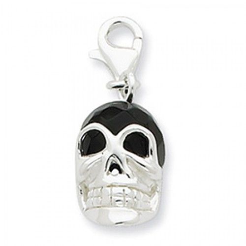 Onyx Skull Charm in Sterling Silver - Special Shape - Polished Finish - Enticing |