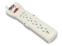 Surge protector with seven outlets is designed to protect electronic equipment against surges, spikes and line noise. Design accommodates bulky transformers without blocking remaining outlets. Surge protector offers EMI/RFI line noise filtering, protection up to 2160 joules, 7' cord with a right-angle plug, diagnostic LEDs and keyhole supports for wall mounting.