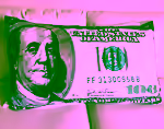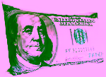 The pillowcase features visible text including 'UNITED STATES OF AMERICA,' '100,' and 'John W. Snow, Secretary of the Treasury.'