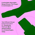 The triangle shape and Velcro fasteners secure the strap around the back of the head, providing a snug fit that stays in place during movement. The design is intended to prevent slippage while sleeping.