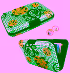 The wallet is made from aluminum with a jeweled exterior. (visible)