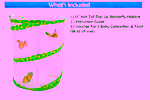 The kit contains a 12‑inch tall pop‑up butterfly habitat, an instruction guide, and a voucher for five baby caterpillars and food.