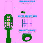 Unlike many work lights that require a power cord, this model runs on batteries and can be mounted hands‑free with a magnetic base or hook.