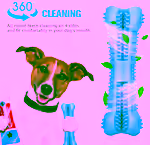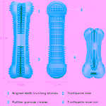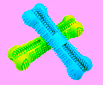 Bone-shaped chew toy with bristles (dog dental bone) aids in dental cleaning for dogs, available in blue and green colors.