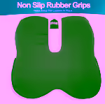 The cushion has rubber grips on the bottom mesh cover and non‑slip rubber grips on the sides, which keep it from sliding on smooth surfaces. The U‑shaped cutout also helps anchor the cushion in place. If the cushion does slip, cleaning the grips can restore grip. This design is intended for typical office or car seat use.