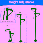 The shaft can be adjusted to four positions, from 19 inches up to 41 inches. Use the push‑button locks to set the desired height. This range accommodates most adults and allows a comfortable grip.