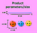 Each rod is 38 cm long and each sphere is 6.3 cm in diameter. These sizes allow the pieces to fit together securely and support larger structures.