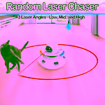 The toy offers three laser angles—low, mid, high—plus LED lights, a feather wand, and a rolling ball track.