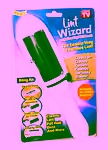 The Lint Wizard has a self-cleaning lever, while lint rollers use adhesive sheets that need replacement.