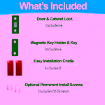 If the adhesive loses its hold over time, replace the adhesive strips with new ones from the included set. The product instructions recommend wiping the surface with a damp cloth before reapplying. Replacing the adhesive restores the magnetic connection and keeps the lock secure.