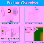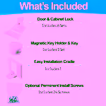 HOW TO USE: Use magnetic key to unlock from up to 1.5 in away. Set lever up for permanent unlock mode during cleaning. Place key holder on fridge or wall for accessibility. Test lock strength after install by pulling firmly. Avoid installing on glass or uneven surfaces.