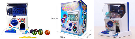 Coin Operated Funny Capsule Machine With Sound and flashing light. You can put your favorite toy or treat in 6 capsule colored balls, insert one of the plastic tokens included, turn the dial and out comes the capsule! Great for kids and children.