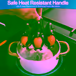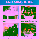 To safely remove eggs from hot water, lift the penguin rack using its heat‑resistant handle. The drainage hole lets hot water escape, preventing burns when you retrieve the eggs. This method keeps the eggs cool enough to handle safely.
