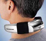 Our wearable invention houses miniature evaporative-cooling system. Just fill with a few ounces of water, place around your neck and switch it on: A quiet motor drives a tiny fan that creates evaporative cooling; flexible sides hold aluminum cooling plates against your neck — and your entire body enjoys up to four hours of relief. What's more, the fan inside adds even more cooling by directing a gentle breeze over the back of your neck.
