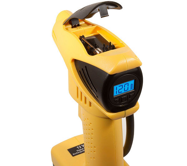 This Digital Cordless Portable Air Compressor tire inflator saves the day. The inconvenient discovery of a flat tire or the daunting task of inflating sports balls for an entire camp is alleviated with this cool tool. It inflates car tires, sports balls and other inflatables in minimal time with its flexible air hose adapter. It takes the guesswork out of overfilling or under filling your tires. The easy to read pressure gauge always shows you when you've reached the perfect pressure.The powerful, rechargeable 12V battery provides 116 PSI. Charge at home or on the go with the included wall charger and car adapter. Convenient, compact design is 7.13in.L x 10.13in.W x 3.13in.H; weight is only 4.2 lbs. A thoughtful gift for anyone who drives a car, plays a sport with an inflatable ball or uses inflatable furniture.Digital Cordless Portable Air Compressor with Nozzle Adapters are not only stronger than the popular Air Hawks / Air Dragon, but are also more economical, saves you time and money.