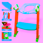 Place the seat over the toilet rim so it snaps securely; adjust height if needed and position the step platform for the child.