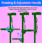 The secondary handle is spring‑loaded; when you need support, pull it up and it locks into place. When you’re walking, the handle automatically retracts to keep the shaft clear. This feature lets you switch between walking and standing support without extra steps.