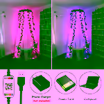 The RGB LED String Light is either 16 feet (50 LEDs), 33 feet (100 LEDs), or 65 feet (200 LEDs) in length depending on the option you choose to purchase. The copper wire is fused with micro LEDs that are placed 4 inches apart from each other. These micro LEDs create a stunning light show effect without the need of a RGB Controller. Each micro LED has been specifically programmed to perform various light effects consisting of fading, color jumping and flashing. Once the LED String lights are turned ON, you can control everything from the IOS or Android application with is free.