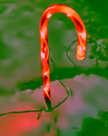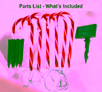 Insert the small stakes into each candy cane, run the wires through the open channel, connect the wires to the solar panel, attach the large stake to the panel, place the panel in direct sunlight, and switch the on/off toggle to 'on'.
