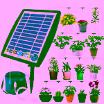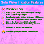 The automatic plant waterer uses a solar panel with a rechargeable lithium battery that lasts 60 days on a full charge. It also includes a 30‑inch USB backup cord for use when sunlight is insufficient. These power options are listed in the product specifications.