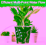Each watering spike has multiple spouts that evenly distribute water along the spike. This design ensures that all connected pots receive a consistent amount of water. The feature is described in the product’s visual text.