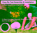 Insert stake #2 into the long slot of stake #1, then place the combined stake into the bottom of the solar panel housing and flip the switch to turn it on. No tools are needed.