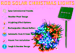 Solar RGB lights use a rechargeable lithium battery powered by a solar panel, so they require no external electricity. Regular LED string lights need a plug or battery pack, which adds cost and maintenance. The solar version is more environmentally friendly and convenient for outdoor use.