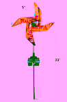 The spinner stands 23 inches tall, including a 3‑inch base and a 5‑inch blade span. This height makes it visible from a distance while fitting comfortably in most outdoor spaces.