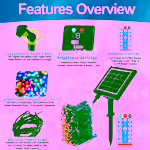 The lights contain a 2400mAh rechargeable battery, which can power the LEDs for several hours after a full charge in sunlight.