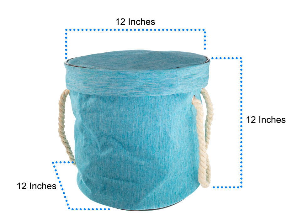 • • LARGE SIZE PLAY MAT & TOY STORAGE BIN - Our storage basket measures 11.8 x 11.8 x 11.2 inches, the diameter of the play mat inside is 57 inches. We offer a fixed game space to you that can help children develop the habit of not throwing toys away arbitrary. The size of the play mat is 59 inches in diameter. Toys are all surrounded by the lip of the play mat and could be stored in a few seconds. Perfect for building bricks, magnetic building toys, dress up dolls, toy cars, and other small pieces. Never step on painful toys again!