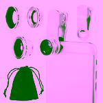 This kit includes wide-angle, macro, fisheye, and telephoto lenses.