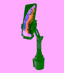 The universal clamp adjusts to hold cell phones and smartphones up to small tablets, with arm widths ranging from 2.5 to 4.4 inches. The padded grips prevent slipping on various cup shapes. This makes it suitable for most handheld devices used for navigation or media.
