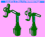 Insert the base into the vehicle cup holder, then twist the grips clockwise until they lock securely. Extend the telescoping arm to the desired height between 7 and 11 inches. Open the phone arms, place your device, close the arms, and adjust the 360° ball joint for the best viewing angle. This setup keeps the mount stable during driving.