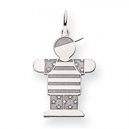 Patriotic Boy Charm in 14kt White Gold - Polished Finish - Graceful - Women