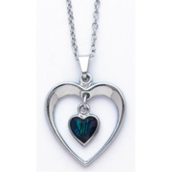 Paua Sea Shell Heart Necklace 18". Elegant heart shape necklaces made with genuine Paua sea shells. These necklaces come with a 18" metal chain.