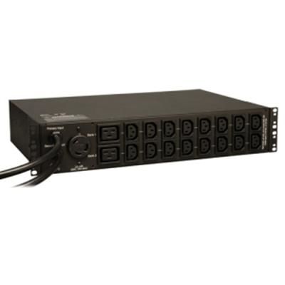 Tripp Lite Metered ATS / Auto Transfer Switch PDU systems enable redundant power configurations for network devices with a single input cord connection. Set of two ATS inputs support connection to separate PRIMARY and SECONDARY power sources. The ATS normally maintains continuous output to connected equipment derived from the primary input. If the primary input fails or becomes unstable, the ATS will switch over to the secondary power source until the primary input is restored and stable. Super-fast switchover between primary and secondary power sources occurs within milliseconds. ATS functionality is supported by any two compatible AC power sources to support a variety of advanced redundant power networking applications. Enables fault-tolerant hot-swappable UPS protection when used with a single UPS and fully redundant UPS protection when each cord is connected to a separate UPS system. In a two-UPS environment, the primary input cable must be supported by a full time sine wave UPS with zero transfer time, similar to Tripp Lite SmartOnline series. ATS configurations utilizing separate mains circuits, backup generators and even out-of-phase power sources are fully supported. On-board ATS processor constantly evaluates power quality on both input sources to prevent transfer to the secondary source when unavailable or of lower quality than the primary source. Front panel current meter offers continuous ATS loading information. Input LED's display primary and secondary power availability. Key Features 208/240V Automatic Transfer Switch (ATS) / Metered PDU (Power Distribution Unit); 30A maximum capacity (agency de-rated to 24A) Provides a redundant power option for critical networking equipment with a single input power cord Front panel digital ammeter with scroll button continuously displays output load level in amps (selectable for bank 1, bank 2, L6-30R and total PDU output) 2U horizontal rackmount form factor; 12.5 in. / 31.7 cm depth 19 built-in outlets (16 C13, 2 C19, 1 L6-30R) Set of two 10 ft. / 3m NEMA L6-30P input cables support connection to separate PRIMARY and SECONDARY power sources ATS circuits normally maintain output sourced from the primary input cable; As primary input power fails or becomes unstable, the ATS will switch to maintain output as sourced from the secondary input cable until power on the primary input is restored and stable ATS configurations enable fault-tolerant, hot-swappable UPS protection when used with a single UPS and fully redundant UPS protection when each cord is connected to a separate UPS system (in a 2 UPS environment, the primary input must be connected to an online double conversion UPS similar to Tripp Lite SmartOnline series) Advanced ATS configurations utilizing separate mains circuits, backup generators and even separate out of phase utility power grid feeds are fully supported On-board ATS processor constantly evaluates power quality on both inputs to prevent transfer to the secondary source when unavailable or of lower quality than the primary source Super-fast switchover between primary and secondary power sources occurs in 3-6 milliseconds Front panel LEDs confirm primary and secondary power availability and indentify the currently selected load segment reported by the current meter Typical Applications Ideal for datacenters, computer rooms and network closet applications to provide single-corded network hardware with redundant power in a metered PDU format Package Includes Auto Transfer Switch PDU Rackmount installation brackets Installable plug-retention shelves & cable ties BRAND : TRIPP LITE