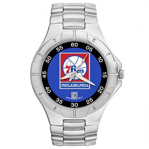Showcase Your 76ers Spirit Everywhere You Go By Wearing This Pro Ii Mens Philadelphia 76ers Watch. This Philadelphia Sports Watch Features the 76ers Official Logo in Full Color Along with a Cutout Date Window. the Colorful Dial Is Contrasted By a Stainless Steel Bracelet and Brushed Chrome Finish Casing. Get the Official Look of the 76ers with This Nba Officially Licensed Philadelphia 76ers Watch in Stainless Steel. Processing Time: 4 days. BRAND : NBA OFFICIALLY LICENSED CHAIN TYPE : NO CHAIN TYPE CLASP TYPE : FOLD OVER HEIGHT : 4 LENGTH : 41 METAL STAMP : 30 METAL TYPE : STAINLESS STEEL METAL UNIT OF MEASURE : GRAMS TOTAL METAL WEIGHT : NO METAL STAMP UNIT OF MEASURE (DIMENSIONS) : MM WIDTH : 41