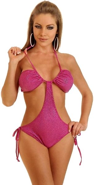 Send Pink Foil Dot Pucker Back Monokini LSend This Page To A Friend