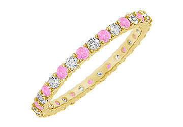 A fashionable circle eternity bangle surrounded with alternate sparkling brilliant-cut round diamonds pink sapphires are beautifully prong-set. Made in 14K yellow gold has a total gem weight (TGW) of 10.00 carat. This gorgeous eternity bangle is made in USA and we can make this bangle exactly as per your wrist. Call us for free bangle sizer.