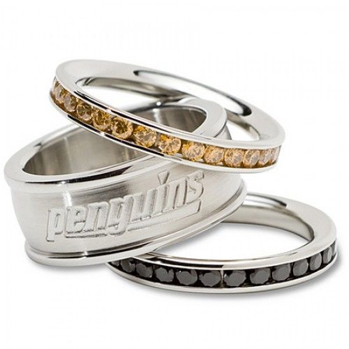 Pittsburg Penguins Cubic Zirconia Stacked Ring Set |