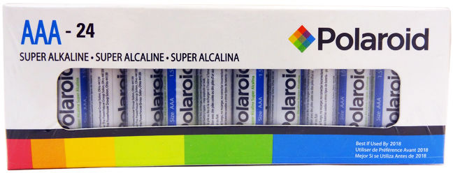 Polaroid Super Alkaline AAA Batteries 24 Pack. Best if used by: 2018. Polaroid Batteries, premium alkaline AA, 24 Pack,designed for long-lasting performance in the broadest range of device application. Polaroid super alkaline is an environmentally responsible battery that can be disposed of with regular household trash. Great/reliable portable power that maximizes fun, productivity and safety. Case pack 4 - 24 packs." Case Pack 4 Please note: If there is a color/size/type option, the option closest to the image will be shipped (Or you may receive a random color/size/type). BRAND : DDI PRODUCT_CODE : 645340101187 PRODUCT_CODE_TYPE : UPC