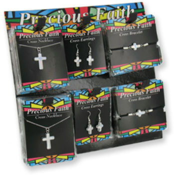 Precious Faith Jewelry Assortment Divinely irridescent cross pendant, earrings and bracelet. Striking glass-like jewelry pops against black carding bordered with stained glass graphics. Show your faith and devotion in a stylish and artisitic manner. •Assorted styles •Includes custom display" Case Pack 72 Please note: If there is a color/size/type option, the option closest to the image will be shipped (Or you may receive a random color/size/type). BRAND : DDI PRODUCT_CODE : 722950211595 PRODUCT_CODE_TYPE : UPC