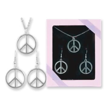 Pretty N' Peace Peace Sign Necklace/Earring Set Silver Finish Peace Sign Pendant on 16" Cable Chain with 2" Extender and Matching Peace Sign Pierced Earrings A Fashionable Favorite Lead and Cadmium Safe " Case Pack 48 Please note: If there is a color/size/type option, the option closest to the image will be shipped (Or you may receive a random color/size/type).