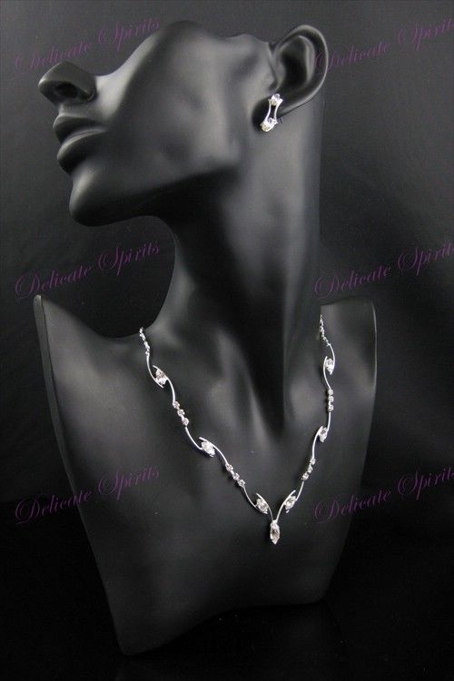 Bridal Wedding Necklace Earring Set Rhinestone Silver Vine Design BRAND : IRISD BRIDAL