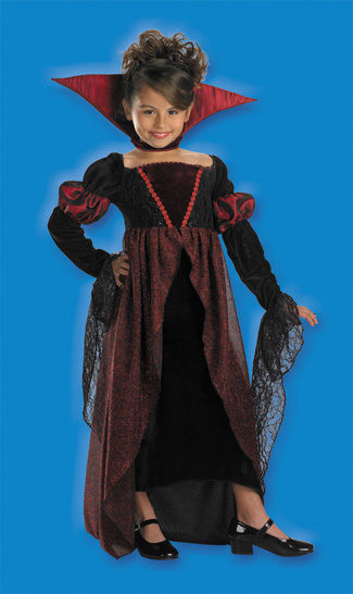 This adorable vampiress includes empire waist gown with red shimmer overlay, long sleeves with gothic lace cuffs and stand up detachable collar. Child size 7-8." Sold Individually Please note: If there is a color/size/type option, the option closest to the image will be shipped (Or you may receive a random color/size/type). BRAND : WMU PRODUCT_CODE : 032692032076 PRODUCT_CODE_TYPE : UPC