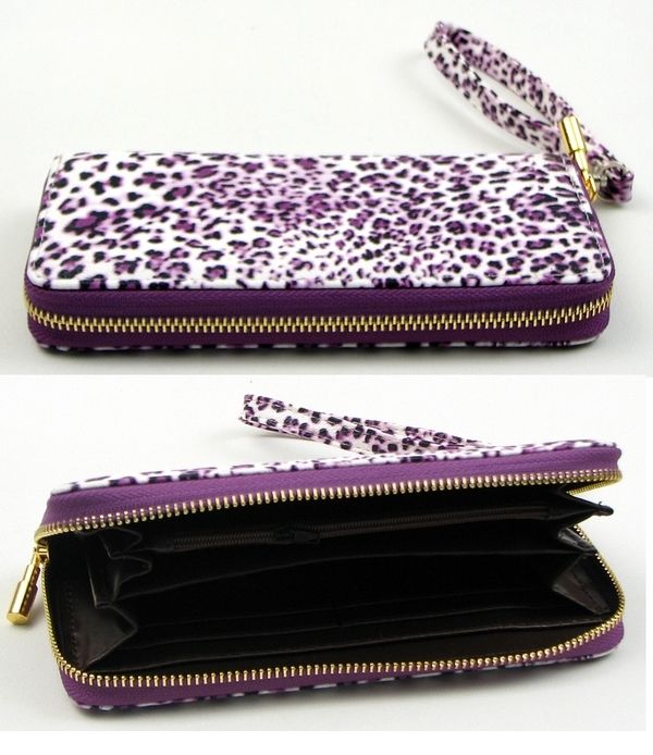 Purple Animal Print Zipper Wallet