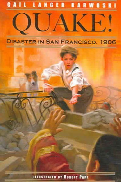 Tells the story of the 1906 San Francisco earthquake through the eyes of Jacob, a thirteen-year-old Jewish boy who lives in a boarding house with his father and younger sister. Additional Details \N BOOK TYPE : JF BRAND : Karwoski, Gail Langer/ Papp, Robert (ILT) DEWEY CLASSIFICATION : FIC DEWEY CLASSIFICATION : FIC GRADE LEVEL : 4-6 LANGUAGE : ENGLISH NUMBER OF PAGES : 153 PUBLISH DATE : 2006/03/06 PUBLISHER IMPRINT CODE : PECHJ PUBLISHER NAME : PEACHTREE PUB LTD RETURNS ACCEPTED? : YES